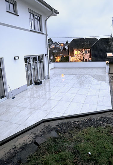 Außenterrasse mit großformatigen Terassenfliesen, 120 x 60 cm