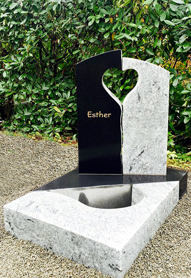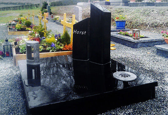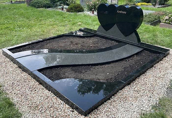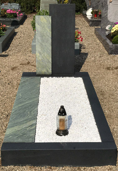 Einzelner Grabstein Nero Assoluto, kombiniert mit Dorfer Grün