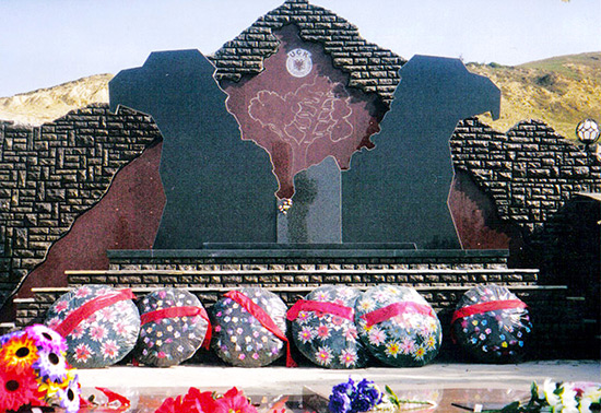 Denkmal, Ausarbeitung in schwarzem und rotem Granit